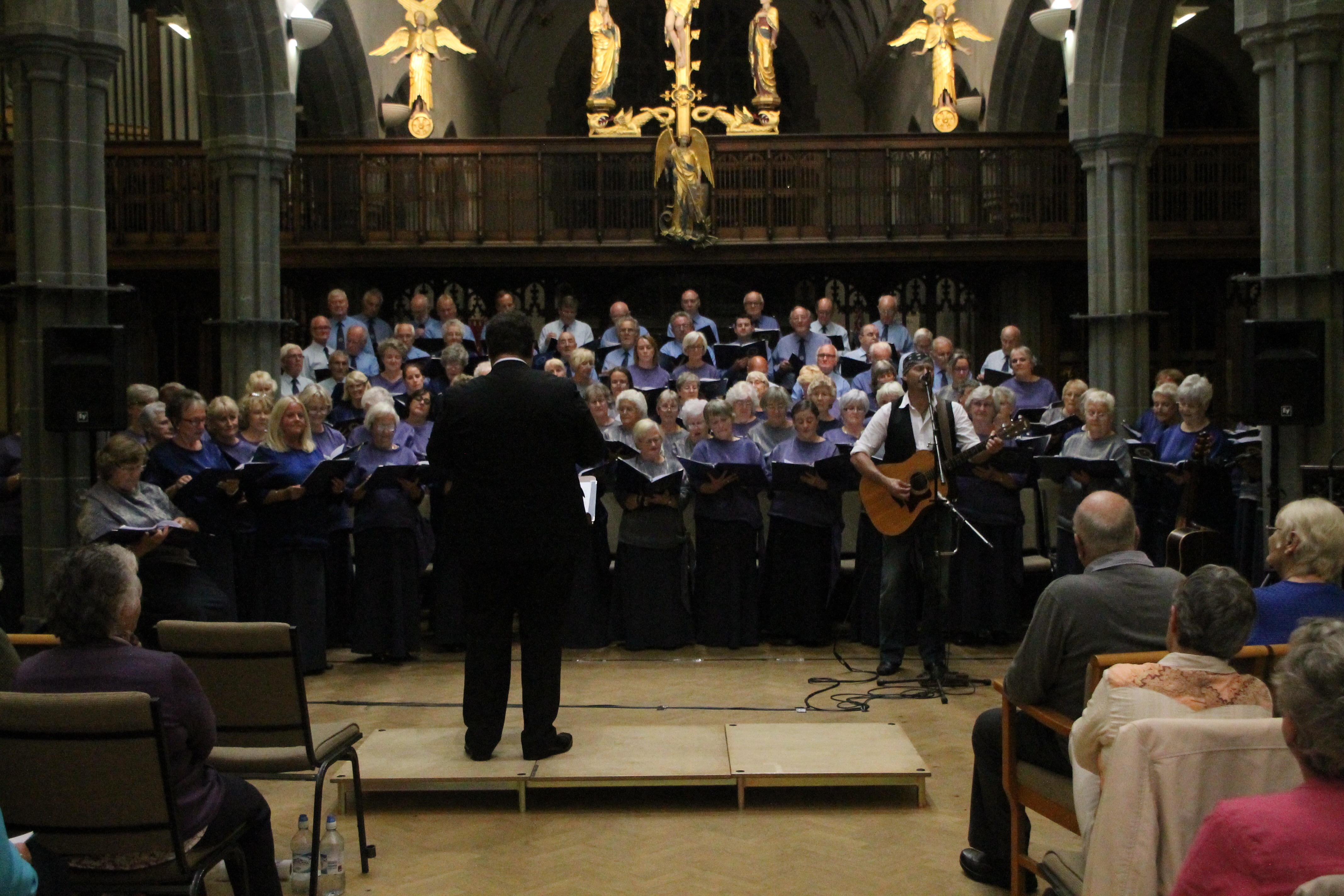 With the wonderfully witty Duncan Warren from Radio Cornwall compering and with the added bonus ofsinging to an almost full venue, the Chorus held the attention of the whole audience and received rapturous applause throughout the evening. As a returning guest performer for the Concert, Chris Bannister kept everyone entertained with his ‘John Denver’ style of singing and the perfectly combined voices of both Chris and Chorus members with their rendition of Annie’s Song (sung twice as it was so well received) resulted in a standing ovation from the audience with calls for this to be recorded and sold for Charity.
